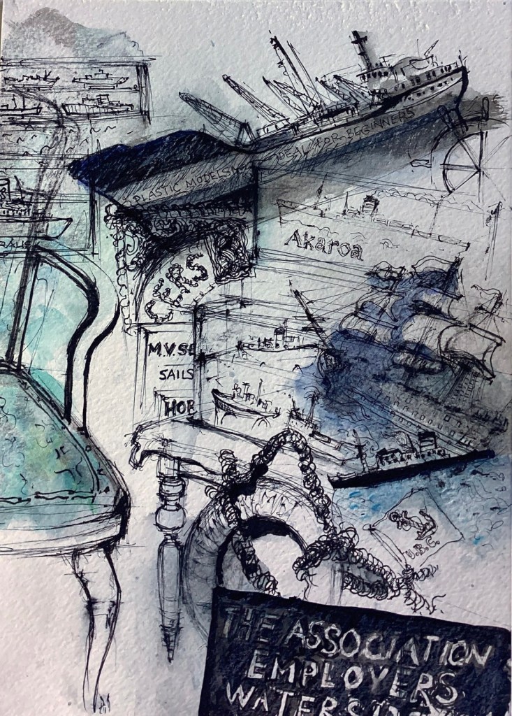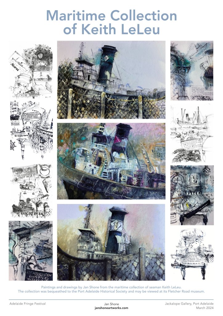These are studies from the maritime collection of seaman Keith LeLeu on display at the Fletcher Road museum of the Port Adelaide Historical Society.