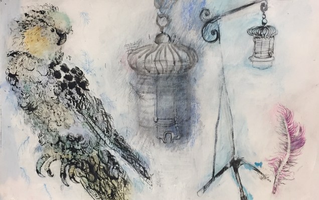 Uncaged: Ink and pastel on paper